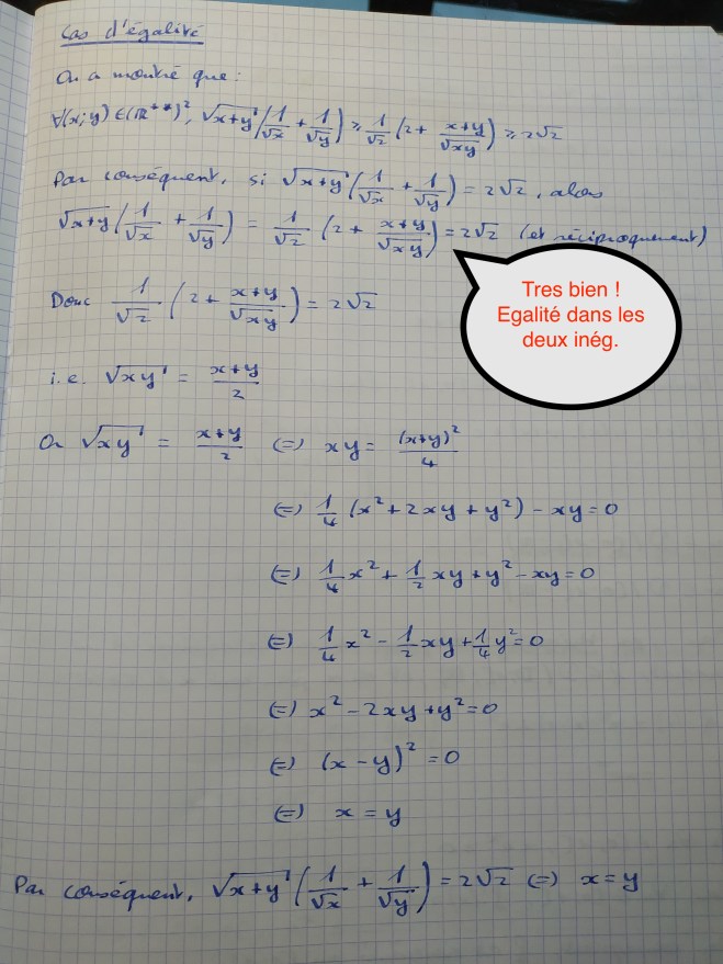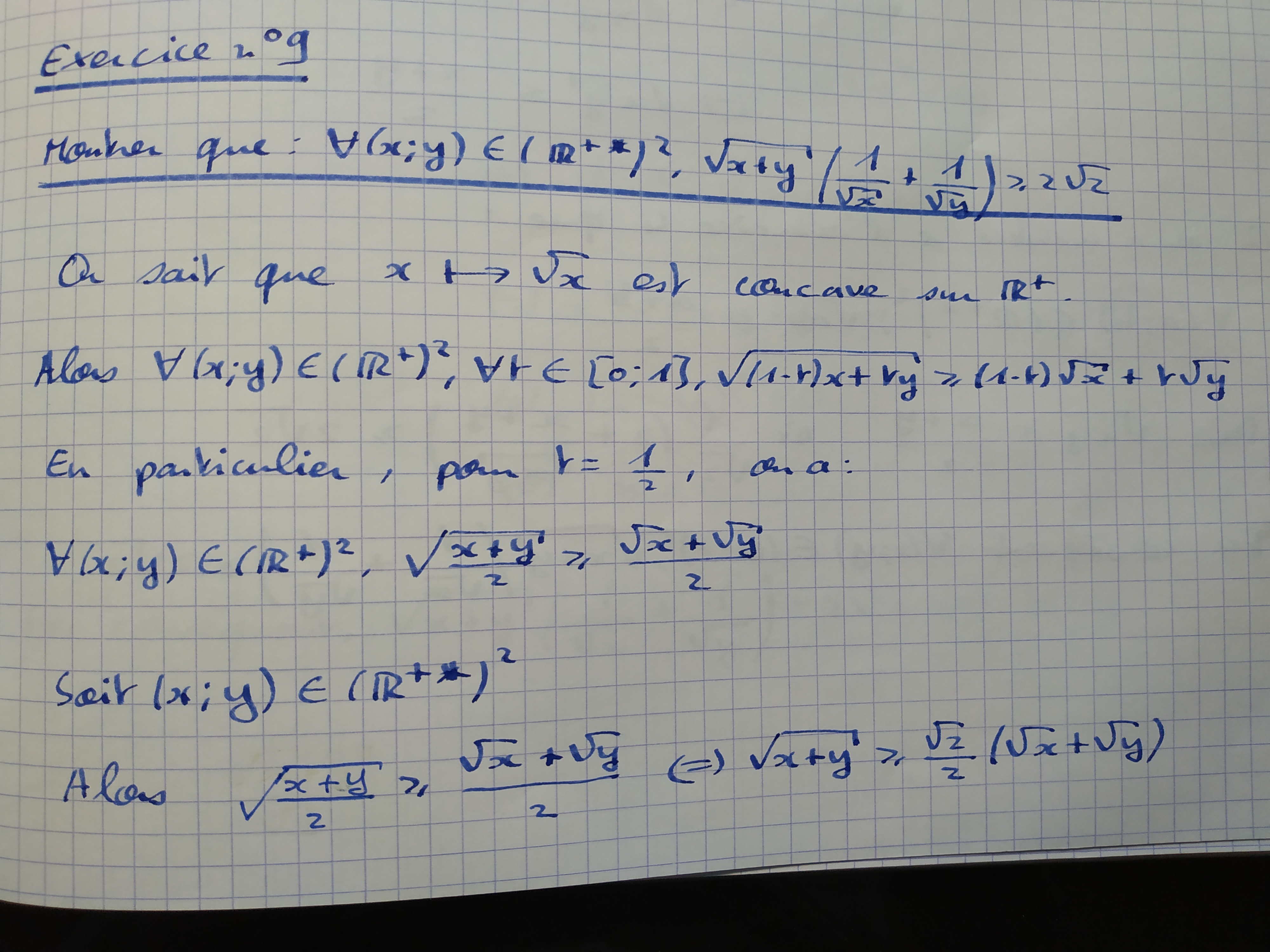 Ex 9 : une solution plus touristique avec la concavité de sqrt( ) et l’I.A.G. Une solution qui nous vient de Bourgogne quand même… Et Partager : Cliquer pour partager sur X(ouvre dans une nouvelle fenêtre) X Cliquez pour partager sur Facebook(ouvre dans une nouvelle fenêtre) Facebook J’aime chargement… Similaire