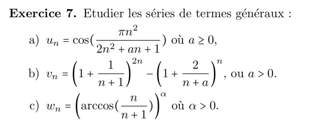 L’ex. 7. c)demande un équivalent de l’Arccos en 1.. je pense qu’on a vu comment faire… mais encore faut-il se rappeler de cette idée importante pour les fonctions réciproques…