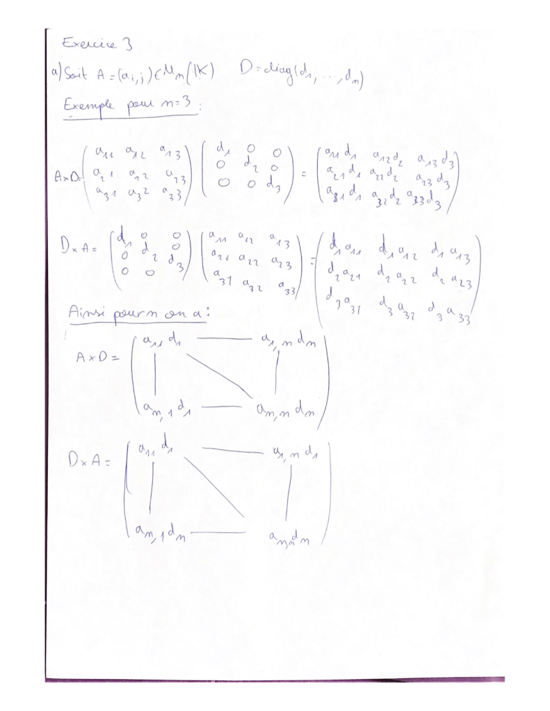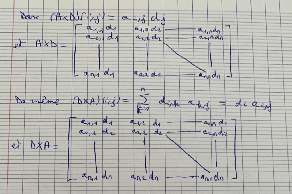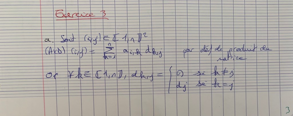Notez bien que le « ainsi » entre le cas n=3 et le cas n qcq est abusif… Il faudrait dire plutôt que le calcul pour n quelconque se fait avec la définition du produit matriciel. C’est ce que Théa rédige dans les images en dessous de la première.