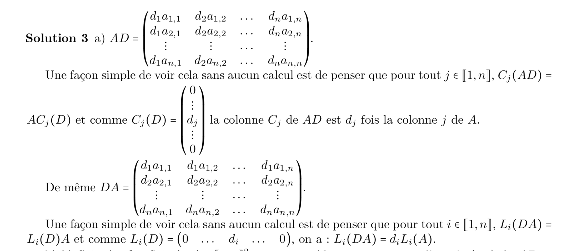 Notez bien que le « ainsi » entre le cas n=3 et le cas n qcq est abusif… Il faudrait dire plutôt que le calcul pour n quelconque se fait avec la définition du produit matriciel. C’est ce que Théa rédige dans les images en dessous de la première.