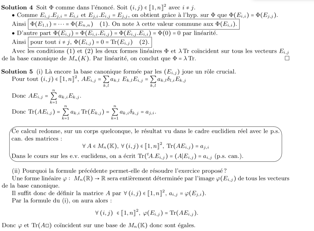 J’ai parlé de l’ex. 5 avec le lemme de Riesz appliqué aux matrices, mais je vous en redonne ici une version tapée.