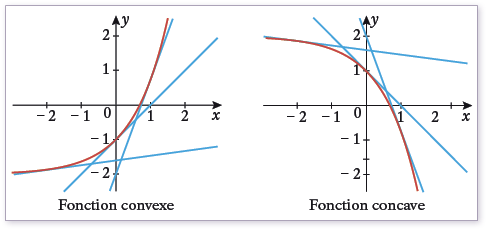 Après coup, je me suis rappelé que les ex MPSI2 n’ont pas vraiment fait la concavité en cours de sup car ce chapitre n’était pas au programme. Alors voici une indication (et qui fait un exercice même si ce sera un résultat de cours au chapitre F1) : une fonction concave dérivable reste toujours en dessous de ses tangentes en tout point.