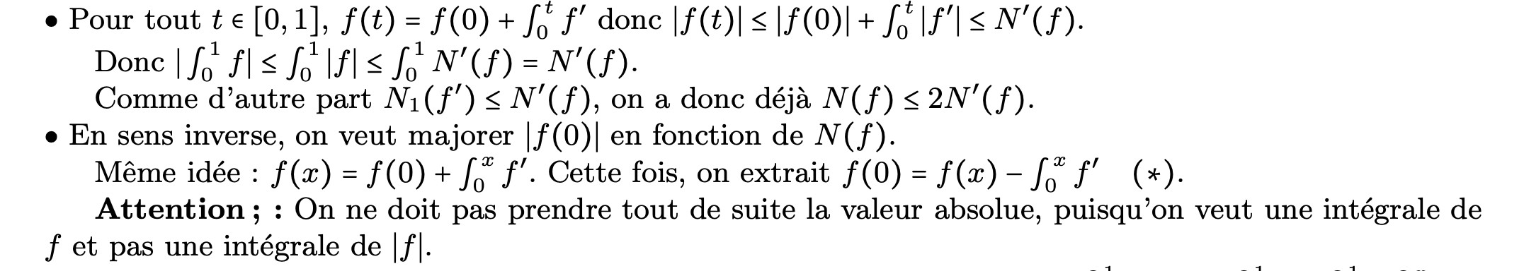 Pour comparer les normes l’idée essentielle est d’écrire f(x) comme l’intégrale de f’ de 0 à x à l’addition près de f(0).