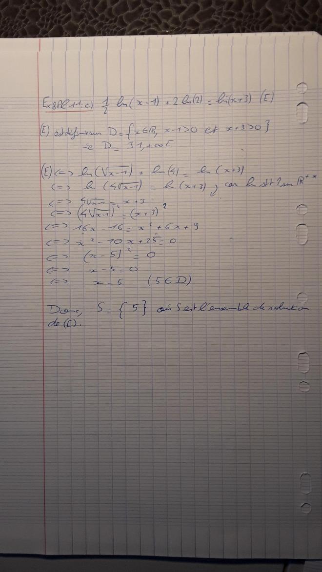 Ex 8 b) et c) version rédigée en commençant par l’ensemble de définition et en gardant les équivalences Une excellente rédaction !
